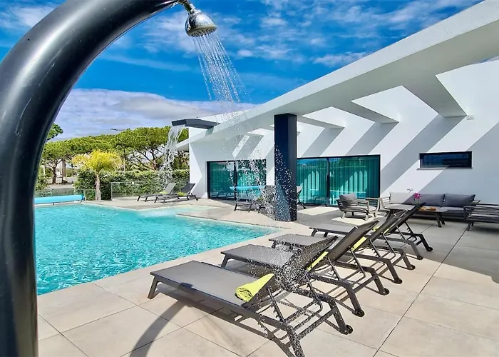 A 6 hálószobás Villa Waterfall - Clever Details, Luxury, 5Min Walking From The Center Vilamoura közel van olyan városi nevezetességekhez, mint a csupán egy 5 perces sétára található Igreja de Vilamoura. A Vilamoura városi villa kültéri medencét, valamint jakuzzit kínál, hogy egy fárasztó nap után kikapcsolódhasson.